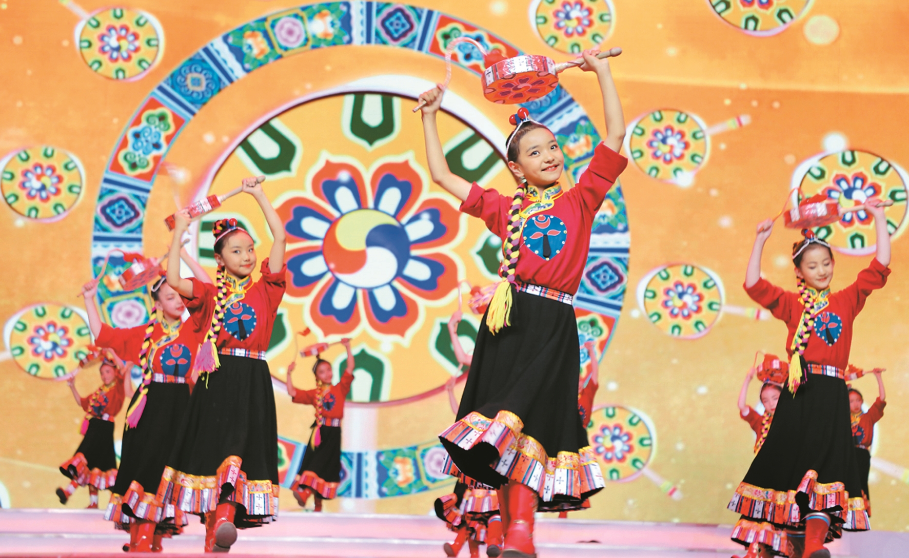 圖為拉薩市實驗小學學生表演的《格?;ㄩ_向未來》文藝節(jié)目。西藏日報特約記者 格桑倫珠攝