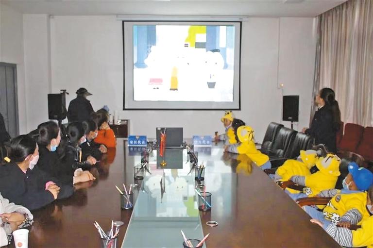 圖為色尼區(qū)人民檢察院通過多媒體法律講堂向幼兒和家長代表播放《中華人民共和國家庭教育促進(jìn)法》。記者 萬靖 攝