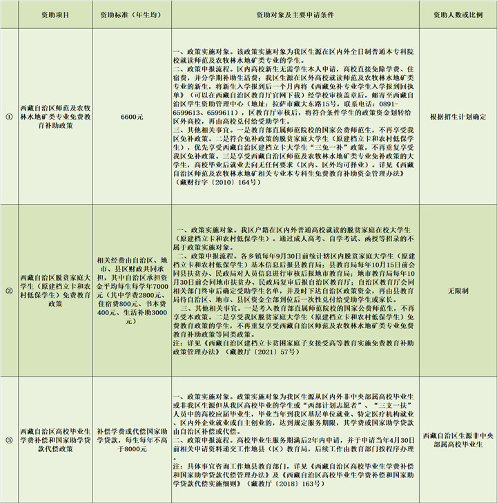 以下為西藏自治區(qū)本??平逃A段學(xué)生資助政策簡介和服務(wù)熱線詳細(xì)情況: