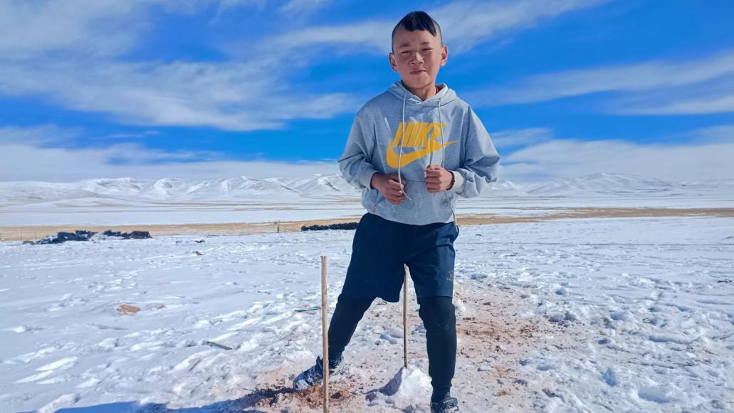 今年六年級(jí)的多果,是玉樹州曲麻萊縣第二民族完全小學(xué)的學(xué)生,微信名稱叫“愛踢球的男孩”,性格靦腆害羞,說起足球,滔滔不絕,黝黑的臉蛋上泛著紅光,12歲的他個(gè)頭不高,和隊(duì)友站在一起略顯瘦削,但一到場(chǎng)上他就成了機(jī)敏的精靈。還記得第一次踢足球時(shí)的場(chǎng)景,那是一個(gè)陽光明媚的午后,雪山下的草地上,五六個(gè)小伙伴一起,一踢就是一下午。