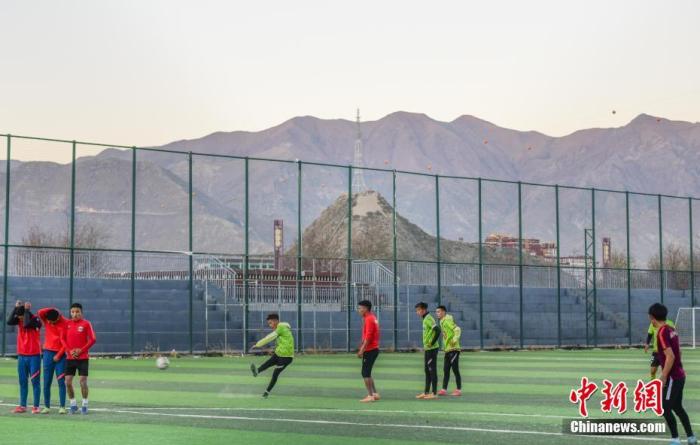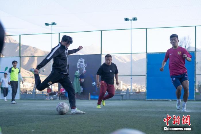 圖為12月12日,拉薩市城關(guān)區(qū)仙足島室外足球場里,市民正在踢球。 中新社記者 貢嘎來松 攝