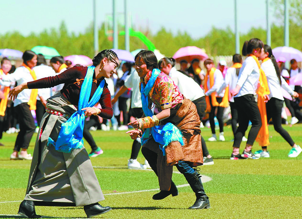 民族集體舞大賽現(xiàn)場(chǎng)。青海柴達(dá)木職業(yè)技術(shù)學(xué)院供圖