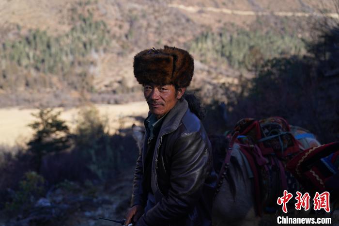 正值寒冬,丹增培楚牽著騾馬隊從香格里拉高原牧場的群山之間緩緩走來,馬幫的銅鈴發(fā)出叮叮當當?shù)臉氛隆?/p>