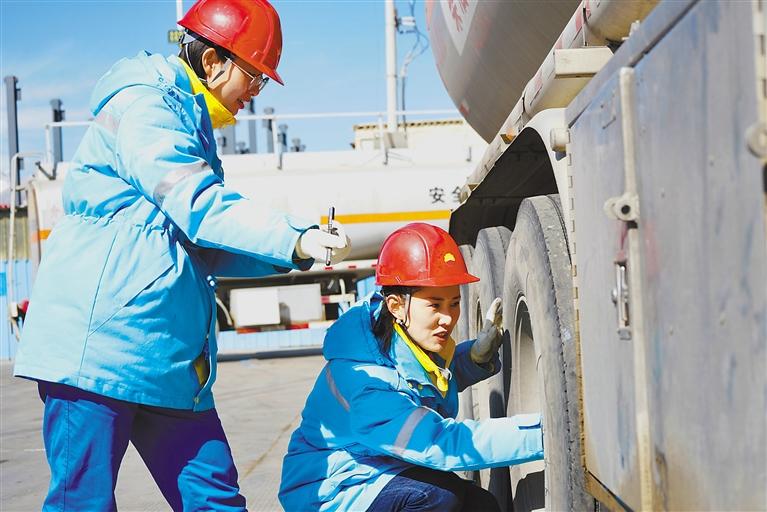 中國石油運(yùn)輸西藏分公司女員工在養(yǎng)護(hù)車輛。記者 次仁平措 攝