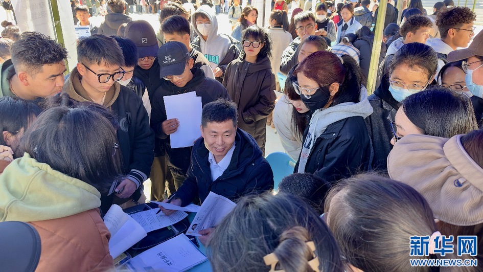 中國石油集團(tuán)西藏銷售分公司的招聘現(xiàn)場(chǎng)(4月4日攝)。新華網(wǎng) 柑丹鴦琦 攝