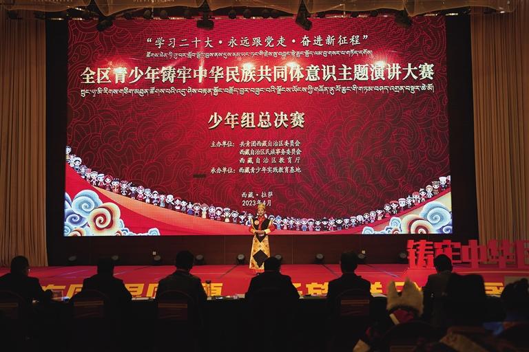 4月7日,由共青團西藏自治區(qū)委員會、西藏自治區(qū)民族事務委員會、自治區(qū)教育廳聯(lián)合主辦,西藏青少年實踐教育基地承辦的“學習二十大 永遠跟黨走 奮進新征程”全區(qū)青少年鑄牢中華民族共同體意識主題演講大賽總決賽在拉薩市舉行?,F(xiàn)場,記者了解到,此次大賽歷經(jīng)3個月時間,覆蓋全區(qū)7市(地)、7所高校、74個縣(區(qū))、740余個村(居)、140所中小學,2000余名各族青少年積極參加各級預賽,其中58名優(yōu)秀青少年4月7日在拉薩市參加少年組、村居展示組和青年組三個組別的總決賽。