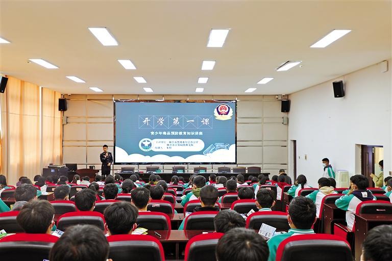 一堂“交通安全”課、一堂“禁毒知識(shí)”課、一堂“法治教育”課……活動(dòng)中,民警們通過(guò)播放視頻、以案說(shuō)法、現(xiàn)場(chǎng)演示等多種教學(xué)形式,用通俗易懂的語(yǔ)言,直觀生動(dòng)的講解,熱烈輕松的互動(dòng),為同學(xué)們送上法律知識(shí)、交通安全、禁毒、反詐等“知識(shí)大禮包”。