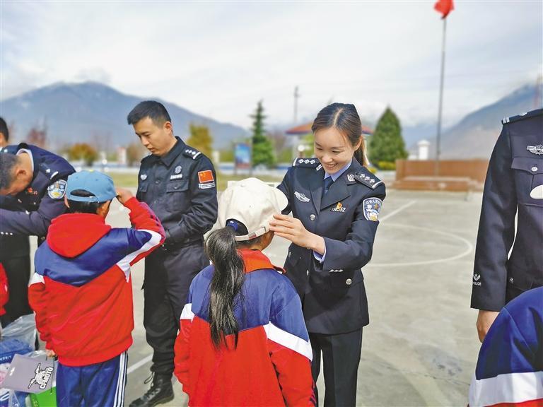 圖為羌納邊境派出所民警為結(jié)對幫扶的同學(xué)發(fā)放學(xué)習(xí)生活用品。記者 張猛 王珊 謝筱純 攝