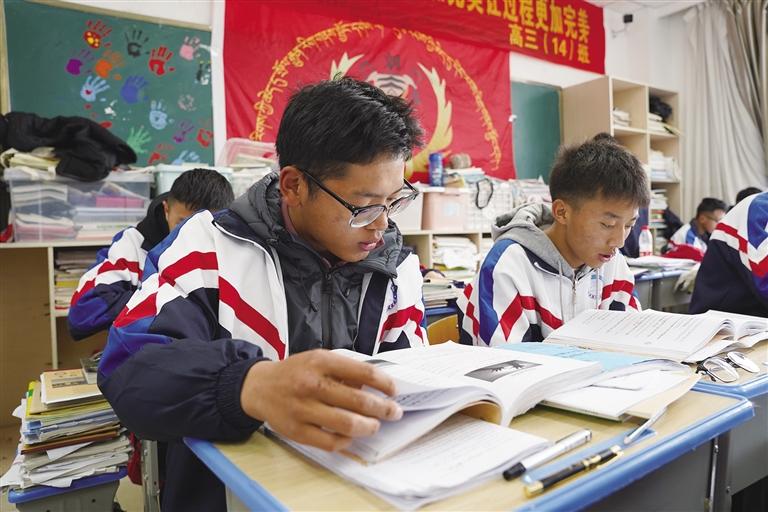 “叮鈴鈴”……隨著下課鈴聲響起,教室瞬間“熱鬧”了起來。有的同學(xué)走出教室活動久坐的身體、有的同學(xué)拿出習(xí)題冊和同桌小聲地討論、有的同學(xué)向老師請教不明白的知識點……清風拂過,暖暖的陽光照在這些青春的身影上,演繹出一首屬于青春的奮斗頌歌?!艾F(xiàn)在是最緊要的關(guān)頭,必須把全部精力投入到學(xué)習(xí)中,爭取多掌握一些知識點?!备呷?2班學(xué)生索朗旦增說,“我的目標是西南政法大學(xué),希望通過自己的努力能實現(xiàn)這個夢想?!?/p>
