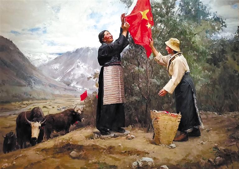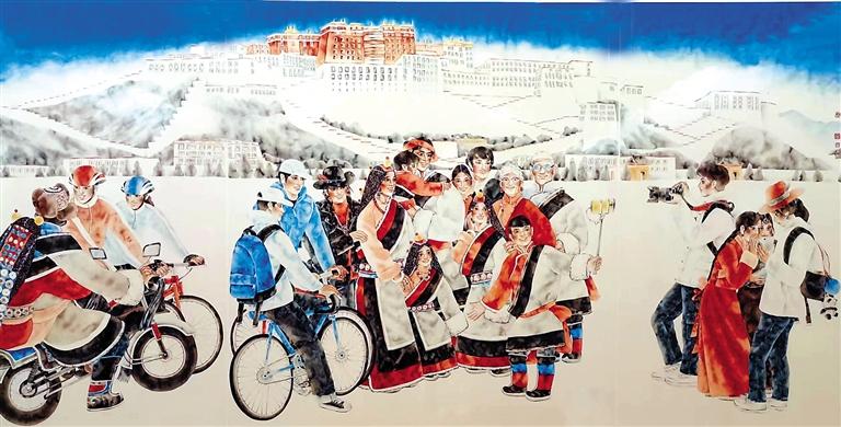 隨著一系列支持政策的持續(xù)推進(jìn)和西藏各族兒女的團(tuán)結(jié)奮斗,西藏的經(jīng)濟(jì)發(fā)展和民生水平都得到了大幅度提升。同時(shí),關(guān)注西藏發(fā)展現(xiàn)實(shí)、進(jìn)行美術(shù)創(chuàng)作的藝術(shù)家日漸增多,一件件優(yōu)秀美術(shù)作品應(yīng)運(yùn)而生,并且在全國(guó)重要展覽中精彩呈現(xiàn),向人們?nèi)妗⒘Ⅲw地展現(xiàn)了新時(shí)代西藏人民生活的美好圖景。2022年秋季在中國(guó)美術(shù)館展出的“第13屆中國(guó)藝術(shù)節(jié):全國(guó)優(yōu)秀美術(shù)作品展覽”中,有大量表現(xiàn)西藏民族風(fēng)情和民生發(fā)展題材的美術(shù)作品,從作品構(gòu)思到藝術(shù)表現(xiàn),體現(xiàn)出鮮明的民族文化特色和民生繁榮景象,展現(xiàn)出美術(shù)創(chuàng)作者深植心底的鑄牢中華民族共同體意識(shí)創(chuàng)作理念。