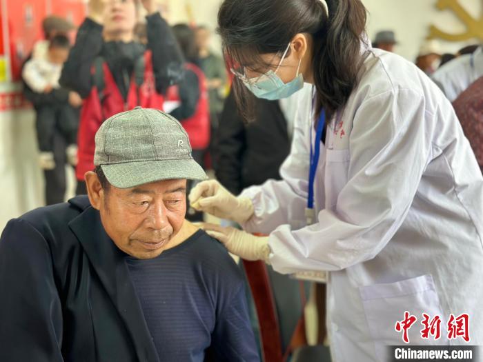 圖為長沙醫(yī)學院“長小團”赴紅崖溝村義診服務現(xiàn)場。 劉洋 攝