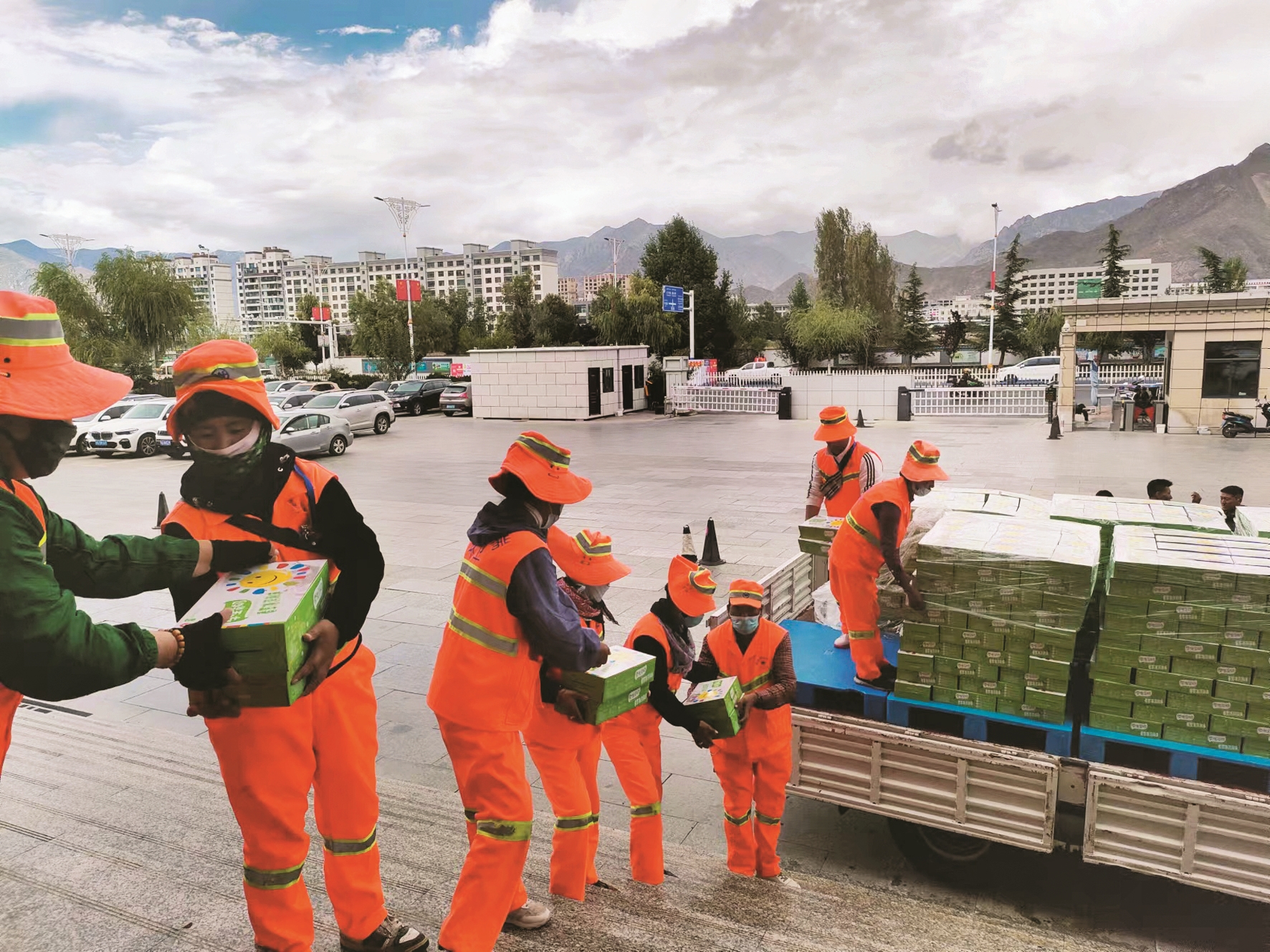 當(dāng)日下午4時,滿載牛奶的運輸車輛駛?cè)刖栀洭F(xiàn)場,在環(huán)衛(wèi)工人們的努力下,一件件牛奶從車上卸載下來?!白鳛橐患覈螅舜伍_展慰問環(huán)衛(wèi)工人活動,一方面是為奮戰(zhàn)在一線的環(huán)衛(wèi)工人奉獻一份微博的力量,同時也是落實作為國企的社會責(zé)任。下一步,我們將繼續(xù)深入拉薩市兒童福利院、拉薩SOS兒童村等開展類似活動,進一步回饋社會,幫助有需要的群體?!蔽鞑貎敉寥闃I(yè)有限公司副總經(jīng)理段旭睿說。