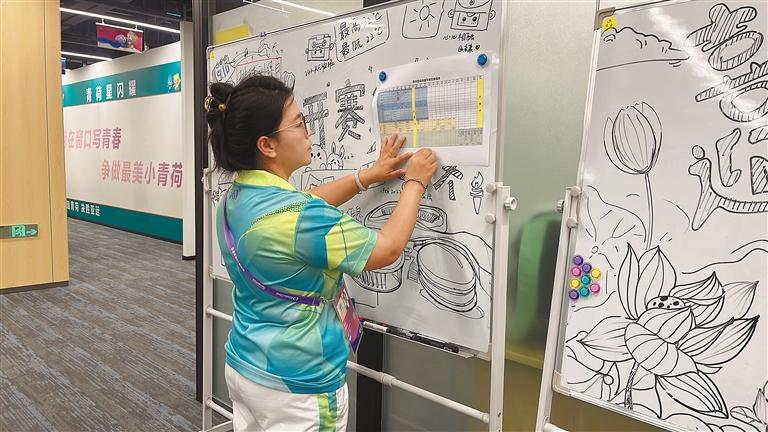 “小青荷”索朗德吉在張貼賽區(qū)賽程表。記者 萬靖 攝