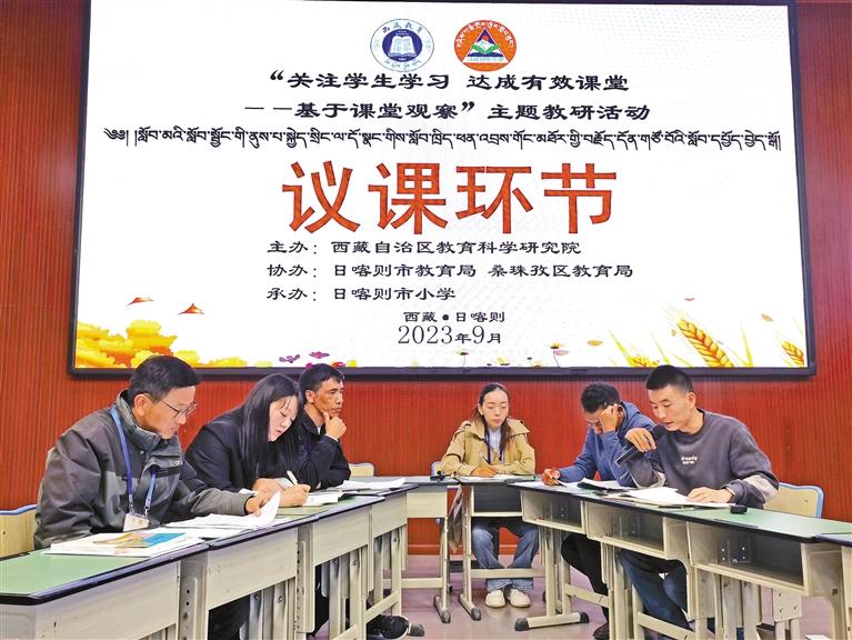 示范課后,日喀則市小學(xué)備課組成員積極議課。 記者 扎西頓珠 攝