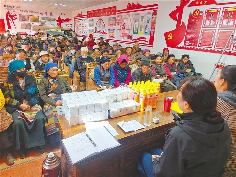 圖為活動(dòng)現(xiàn)場(chǎng),工作人員在講解社保政策。記者 旦增嘎瓦 攝