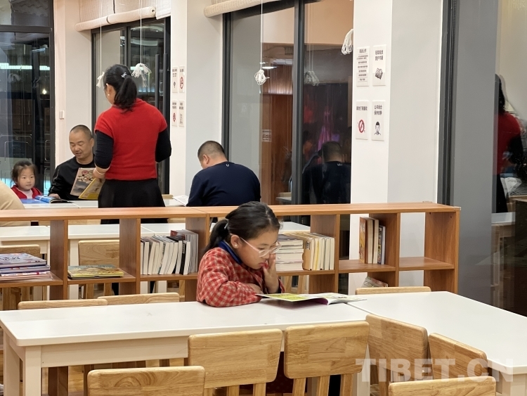 走進(jìn)蓮花書屋,一樓的書架和閱讀區(qū)幾乎坐滿了專心閱讀的大人小孩。“我喜歡來(lái)公園散步,這里環(huán)境很美。前天過(guò)來(lái)散步時(shí),看到我期待已久的書屋終于可以進(jìn)去看書了。家里的書都被我看完了,所以我這兩天一寫完作業(yè)就要來(lái)這里看新的書?!蔽迥昙?jí)的德央措姆在少兒閱讀區(qū)翻看書籍,她為能夠擁有這樣的讀書環(huán)境而感到很高興。