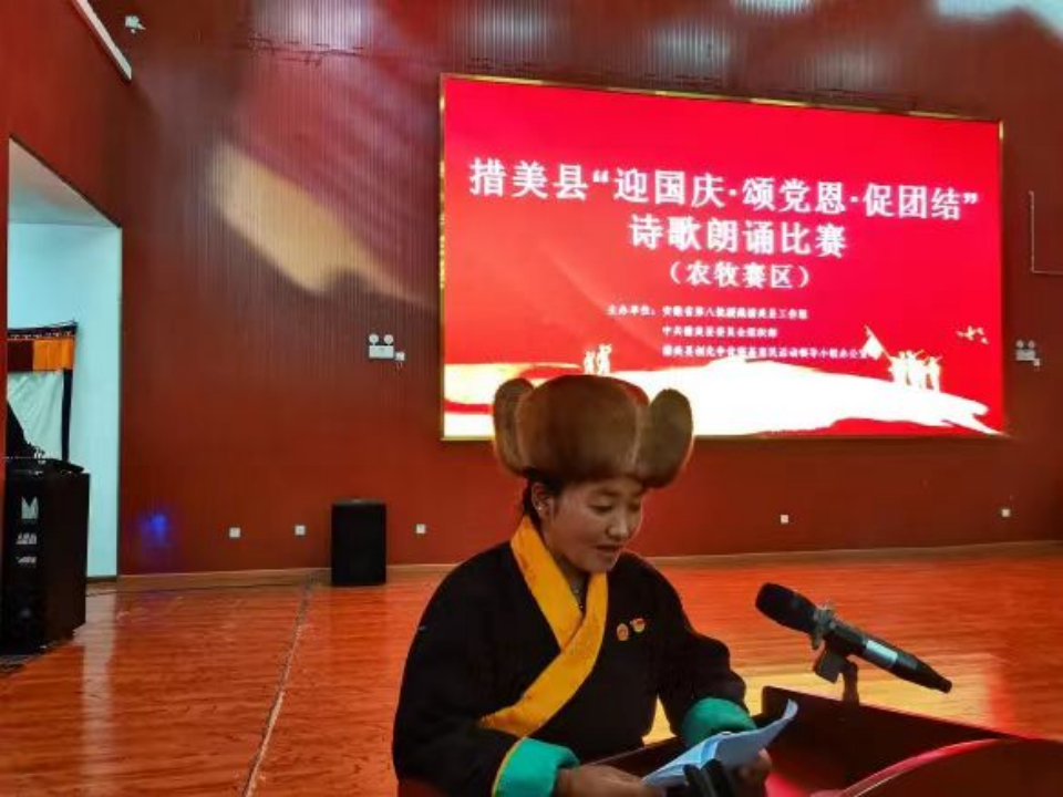 圖為措美縣舉辦“迎國(guó)慶 頌黨恩 促團(tuán)結(jié)”詩歌朗誦比賽。(受訪者供圖)