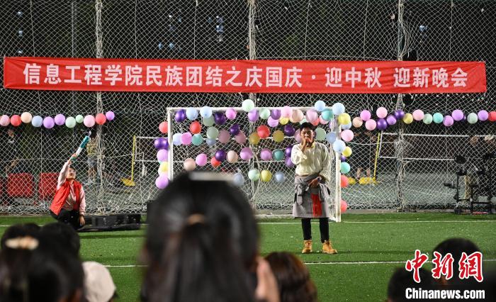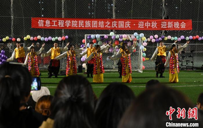圖為2023年9月,藏族學(xué)生在迎新晚會(huì)上表演節(jié)目。趙朗 攝