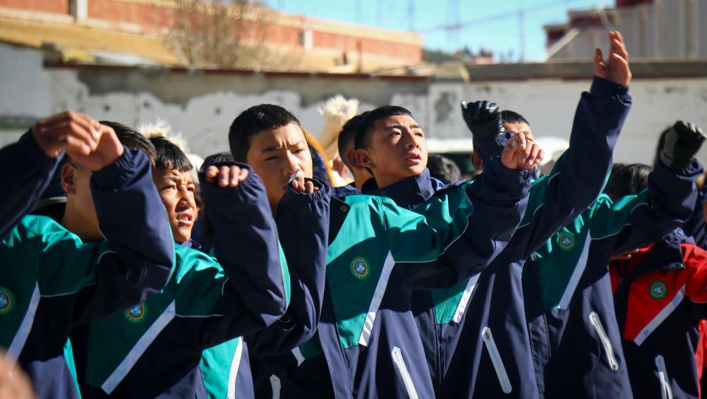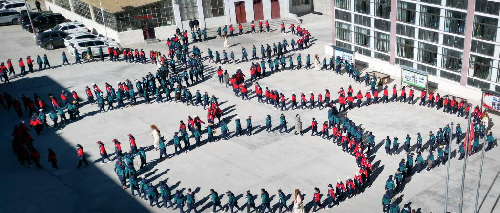 西藏阿里措勤縣中學(xué)的學(xué)生們涌向操場(chǎng)