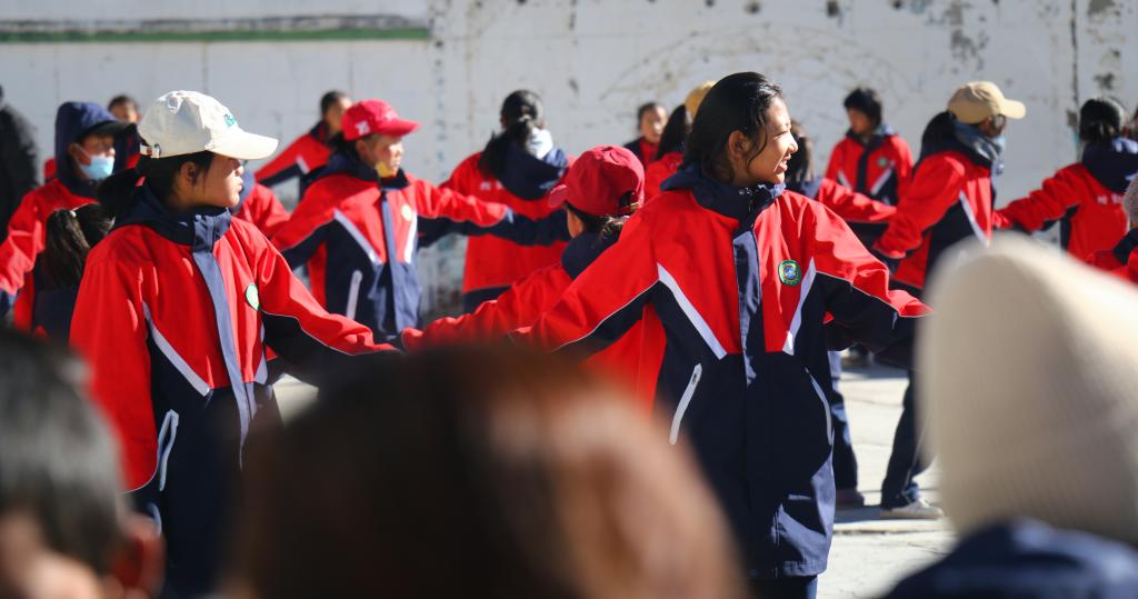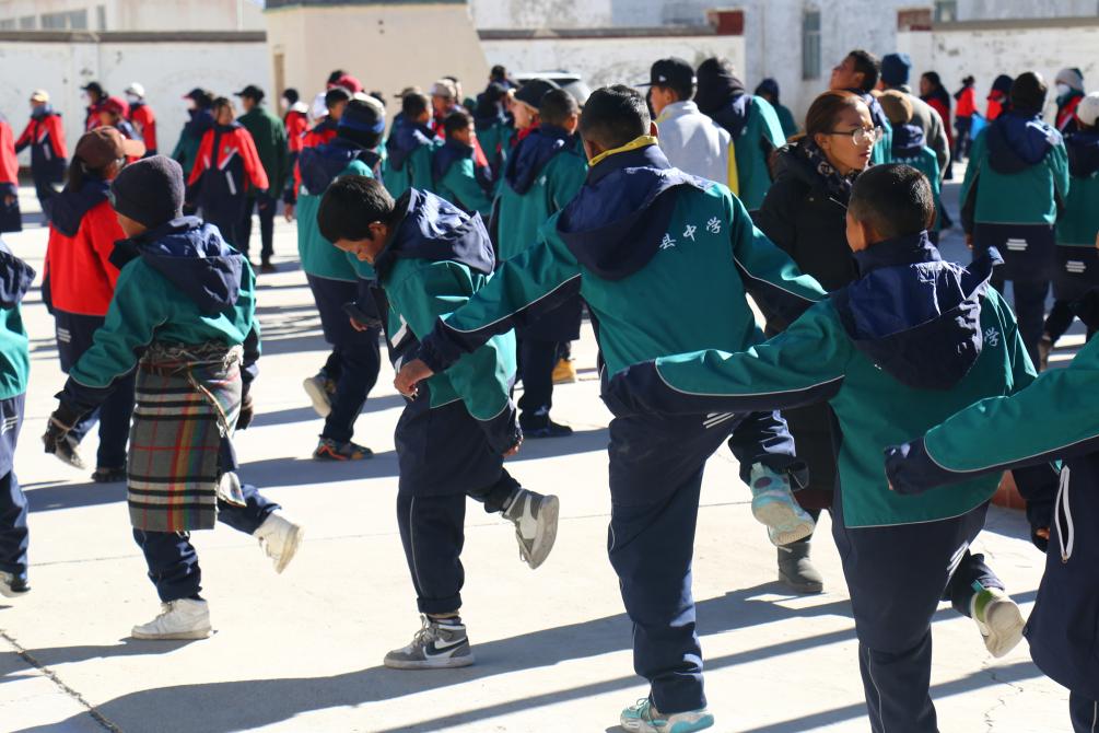 西藏阿里措勤縣中學(xué)的學(xué)生們正在跳“磁石彈舞”(11月13日攝)新華社記者 聶毅 攝
