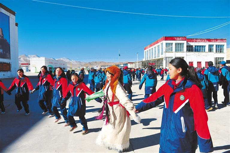 阿里地區(qū)措勤縣藝術團聯(lián)合措勤縣中學創(chuàng)新非遺傳承模式,共同編排的一套“磁石彈舞”廣播體操,受到措勤縣中學師生廣泛歡迎。