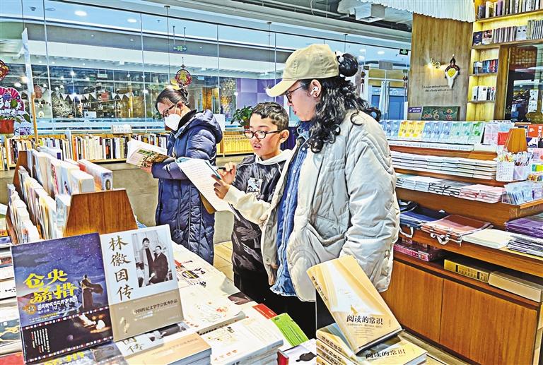 圖為寒假期間,家長帶著孩子來到拉薩某書店選購書籍。記者 旦增蘭澤 攝