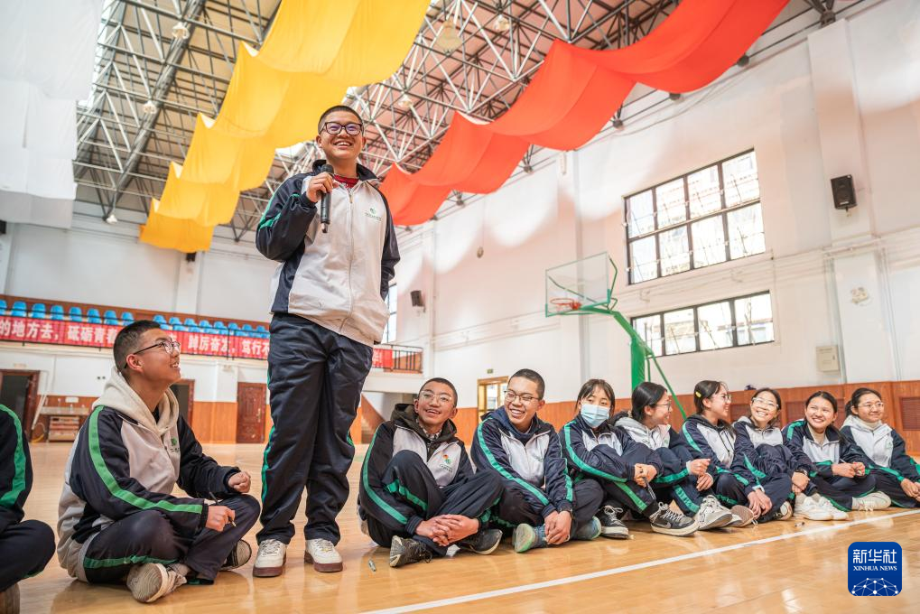 3月1日,拉薩北京實(shí)驗(yàn)中學(xué)的學(xué)生與老師交流新學(xué)期愿望。新華社記者 丁增尼達(dá) 攝
