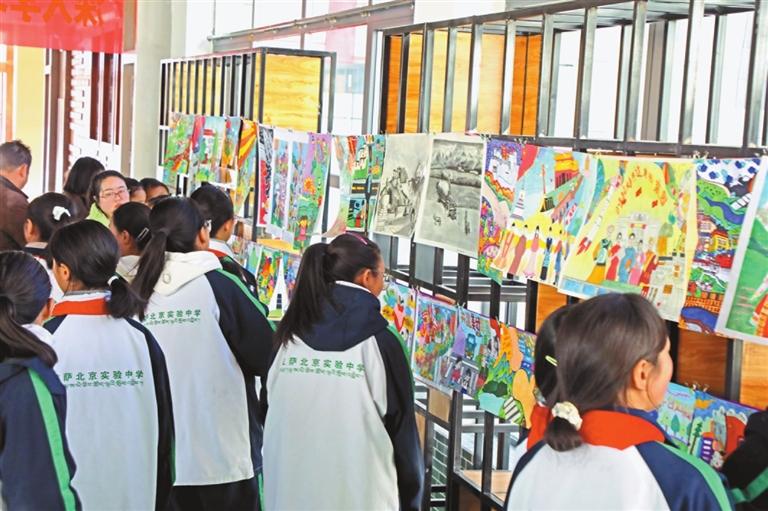 圖為拉薩北京實驗中學(xué)學(xué)生參觀書畫展。記者 格桑倫珠 攝