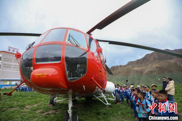 昌都市第二小學(xué)學(xué)生參觀救援直升機(jī)。昌都市森林消防支隊(duì) 供圖