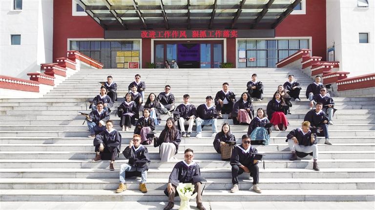 拍攝畢業(yè)照則是高校每一屆畢業(yè)生的“狂歡”。盛夏里,高校畢業(yè)生們身穿學(xué)士服或獨(dú)具特色的藏裝,相互獻(xiàn)哈達(dá),在布達(dá)拉宮廣場(chǎng)、在校園、在羅布林卡、在拉薩河邊留下青春最美的樣子,定格炙熱的青春歲月。