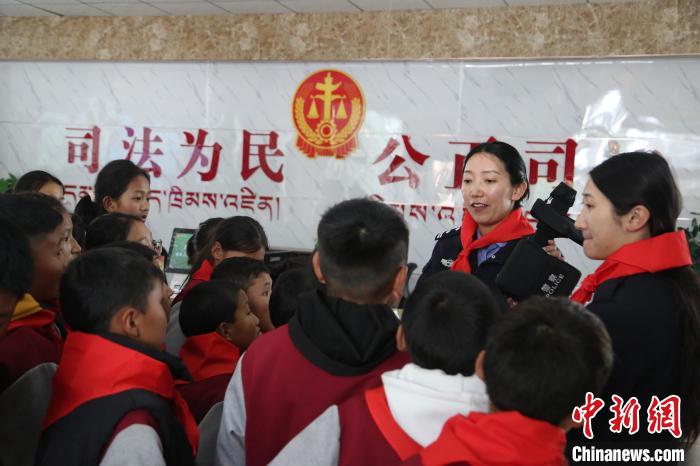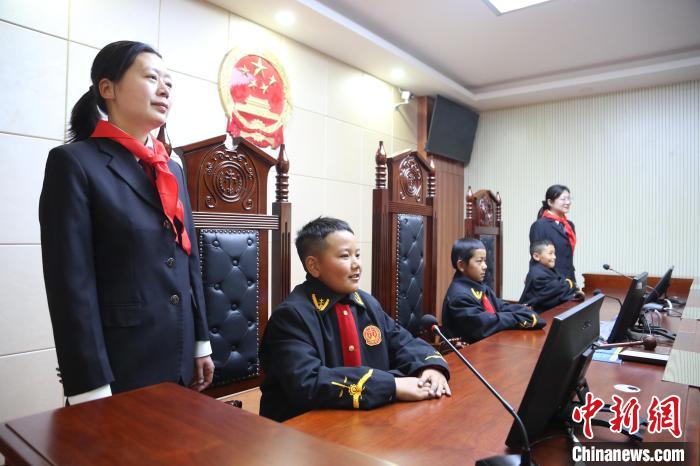 圖為學(xué)生們在法官的帶領(lǐng)下沉浸式體驗(yàn)?zāi)M法庭。倫珠澤仁攝
