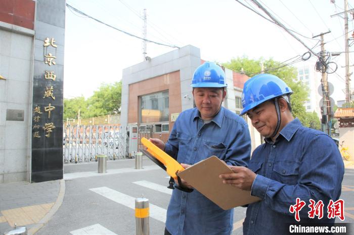 國網(wǎng)北京朝陽供電公司員工在北京西藏中學(xué)開展高考保電工作。翟磊 攝