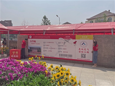 “2024高考加油”“高考就是高高興興地考試”“保持靜心,增強(qiáng)信心,做題專(zhuān)心,考試細(xì)心”……考生一進(jìn)考點(diǎn),就可以看到這些鼓舞人心的標(biāo)語(yǔ)。走出考點(diǎn)時(shí),一張巨型“圓夢(mèng)號(hào)”頭等艙登機(jī)牌映入學(xué)生眼簾,祝福考生們展翅高飛,前程似錦。