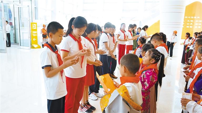 孩子們?cè)谥袊?guó)婦女兒童博物館與北京市東城區(qū)板廠小學(xué)學(xué)生互贈(zèng)禮物。中國(guó)兒童中心供圖