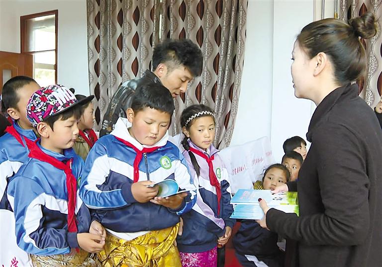 圖為貢覺縣法院工作人員向?qū)W生講解禁毒知識。記者 平措郎加 通訊員 阿漠依依 攝