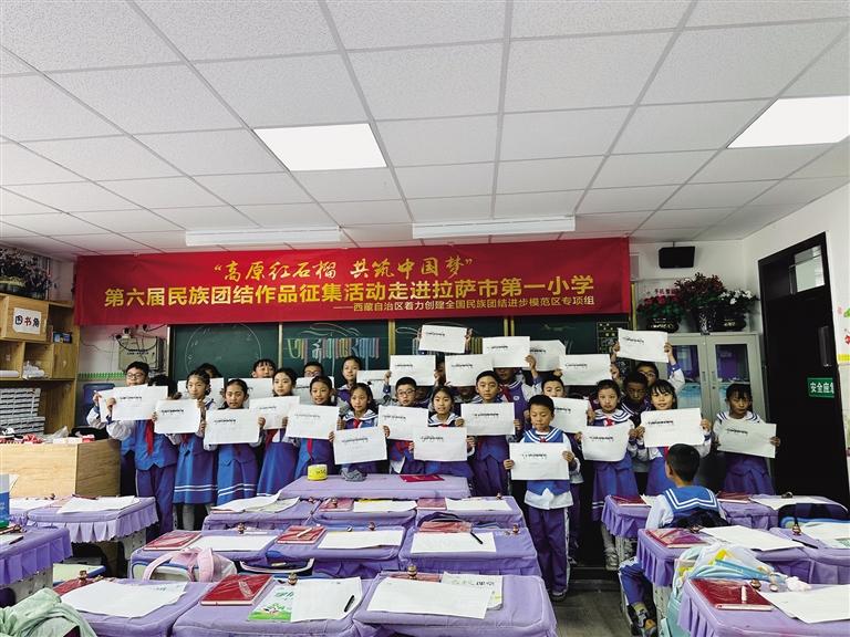 為進(jìn)一步豐富第六屆民族團(tuán)結(jié)書法、美術(shù)、攝影、微視頻作品征集活動(dòng)的內(nèi)容和形式,弘揚(yáng)傳統(tǒng)文化,激發(fā)學(xué)生對(duì)書法藝術(shù)的熱愛之情,7月5日下午,由西藏自治區(qū)著力創(chuàng)建全國(guó)民族團(tuán)結(jié)進(jìn)步模范區(qū)專項(xiàng)組主辦,西藏自治區(qū)黨委宣傳部、西藏自治區(qū)民族事務(wù)委員會(huì)協(xié)辦,西藏傳媒集團(tuán)有限公司承辦的第六屆民族團(tuán)結(jié)書法、美術(shù)、攝影、微視頻作品征集活動(dòng)走進(jìn)拉薩市第一小學(xué),為同學(xué)們帶來了一堂生動(dòng)的藏文書法課。