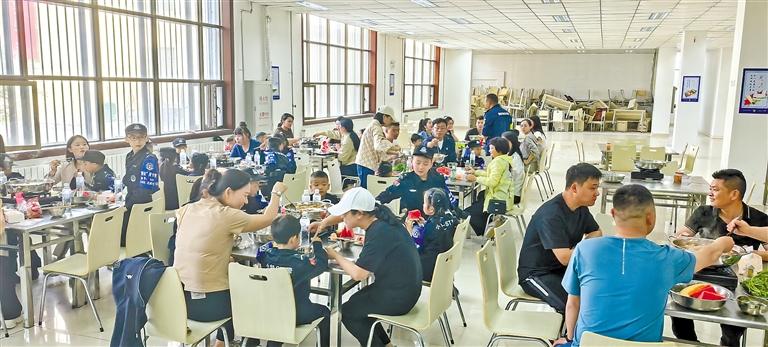 圖為警屬和警娃們在阿里地區(qū)公安處特警支隊食堂吃飯。