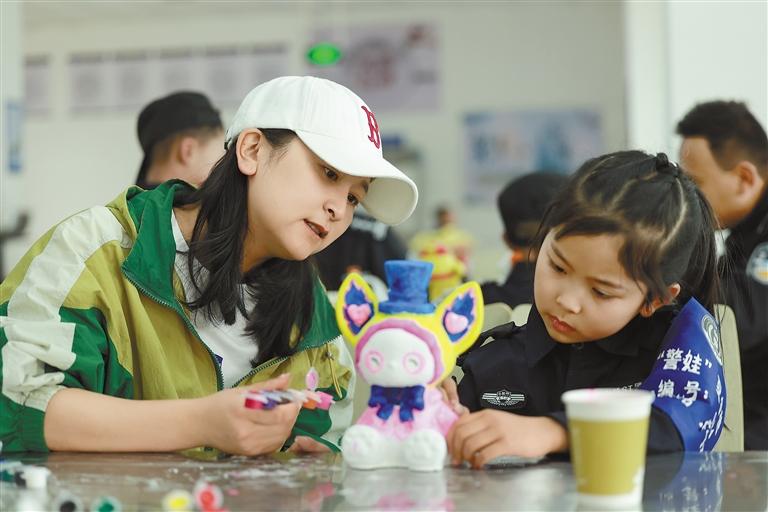 圖為在親子互動環(huán)節(jié),警娃和她的母親在用心涂畫石膏玩偶。通訊員 魏東升 攝