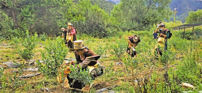 “在藍(lán)莓園工作,不僅能體驗到采摘的樂趣,而且不用外出打工,在家門口就能掙到錢,真的很開心?!笨ㄟ_(dá)村村民拉姆告訴記者。