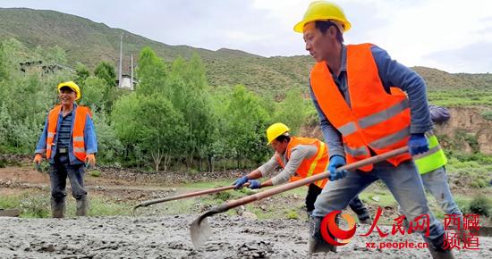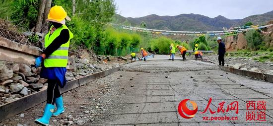 正在緊張施工的拉玉鄉(xiāng)甭唐公路鋪路現(xiàn)場(chǎng) 柴濟(jì)東攝