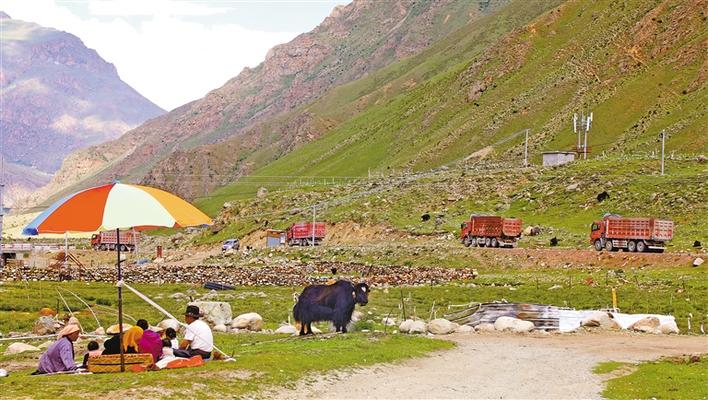 那嘎村村民開(kāi)起運(yùn)輸車,奔向小康之路。