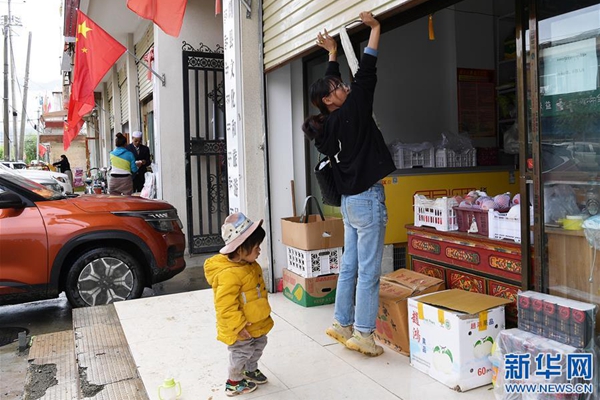 格桑旺姆推開蔬菜店的卷閘門準(zhǔn)備營(yíng)業(yè)(8月3日攝)。