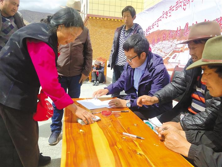 圖為洛隆縣孜托鎮(zhèn)加日扎村集體產(chǎn)業(yè)效益分紅現(xiàn)場。記者 陳志強(qiáng) 攝