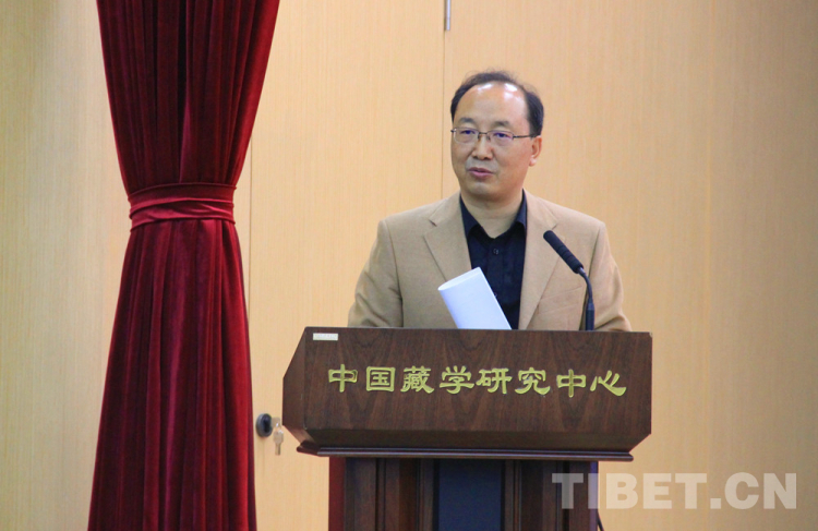 圖為中國(guó)藏學(xué)研究中心社會(huì)經(jīng)濟(jì)研究所所長(zhǎng)扎洛作主旨發(fā)言 攝影:王茜
