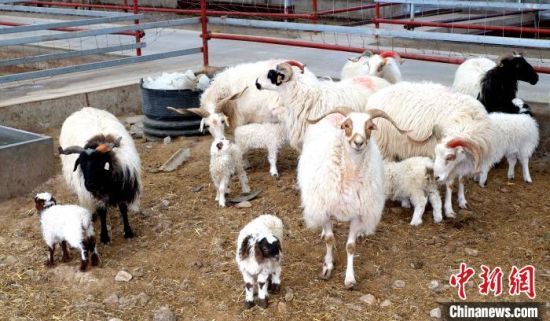 圖為在羊棚里過(guò)冬的母羊和羊羔?!±铍h 攝