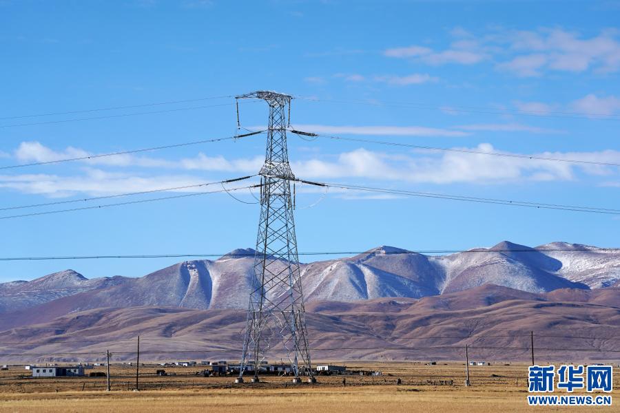這是2020年11月29日在西藏阿里地區(qū)普蘭縣拍攝的西藏阿里與藏中電網(wǎng)聯(lián)網(wǎng)工程輸電鐵塔。新華社記者 詹彥 攝