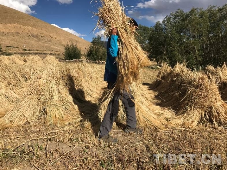 工作隊根據(jù)在前期深入群眾家中和田間地頭了解到的“孤困寡”等人群在秋收中存在勞動力緊缺等問題,號召全體駐村隊員和村黨員干部組成青稞秋收黨員志愿服務(wù)隊自2017年9月13日起,對村孤寡戶、缺乏勞動力戶及特困戶進行秋收幫扶,僅用3天就完成困難戶的收割,解決了他們勞力緊缺的燃眉之急。9月底,拉木堆村的秋收工作已經(jīng)進入收尾階段。村民們都說,今年因為有收割機,收割時間比去年縮短了兩天。當(dāng)全村408畝青稞全部收割完畢,堆置田地中晾曬。聽說今年糧食產(chǎn)量預(yù)計將比上年增收10%左右,再創(chuàng)新高,從干部到群眾,人人樂開了花。