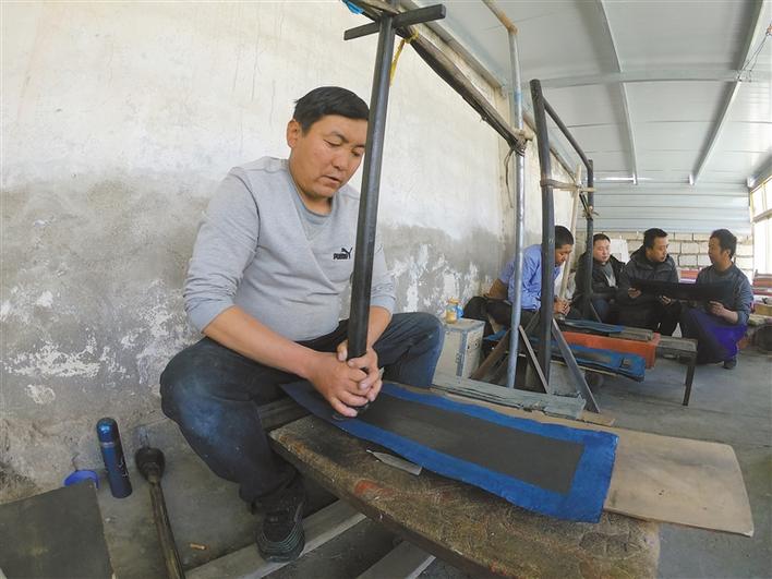 圖為拉薩市尼木縣藏紙廠的技術(shù)人員正在制作藏紙。記者 丹增群培 攝