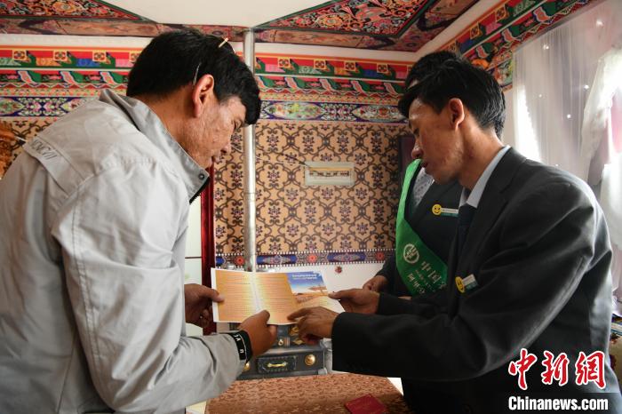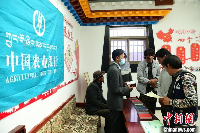 圖為農行日土縣支行工作人員為村民宣講貸款政策。 貢嘎來松 攝