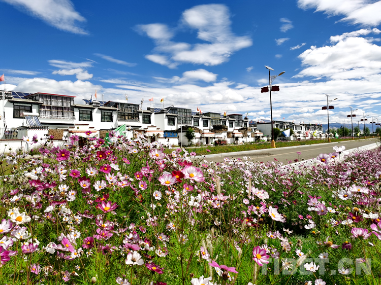 日喀則郭加新村 鮮花盛開(kāi)的新村